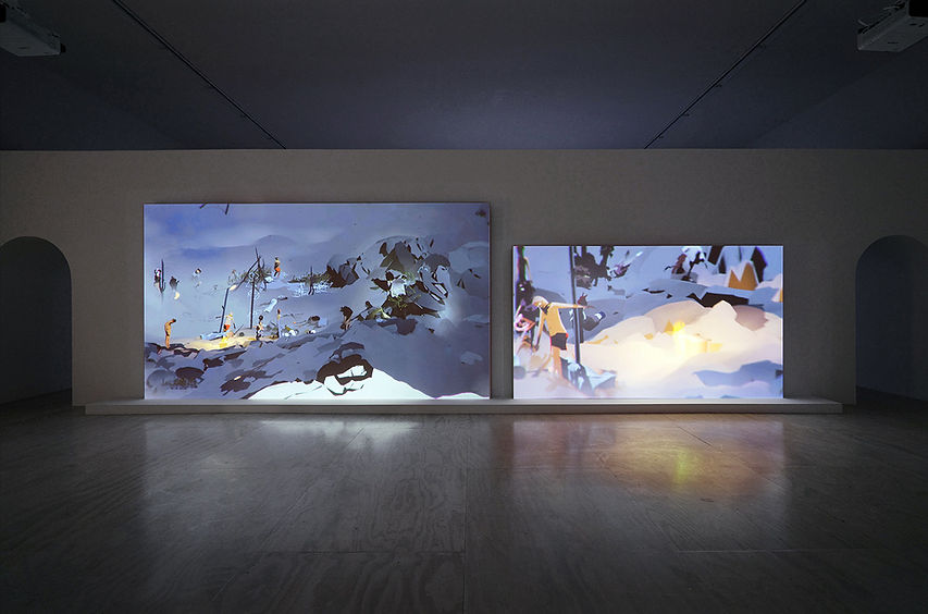 Self-contained digital ecosystems, Cheng's simulations are populated by a cast of characters and wildlife that interact, intervene, and recombine in infinitely generating narratives, inviting timeless questions about evolution, the origins of human consciousness, and ways of relating to a chaotic existence. Presented with 10-foot-tall projections, each simulation unfolds at life size, positioning viewers as observers who can follow the lives of specific characters as they interact within the simulated worlds and each other in an ever-changing environment. The exhibition extends into the digital space through a collaboration with Twitch.tv, the social video platform and community for gamers.
